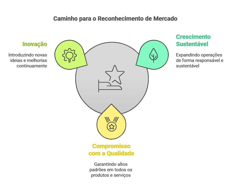 Almejamos ser reconhecidos como referência no mercado, uma empresa que não só cresce, mas que continua a se expandir de forma sustentável. Nosso objetivo é fortalecer nossos negócios, mantendo sempre o compromisso com a qualidade e a inovação.